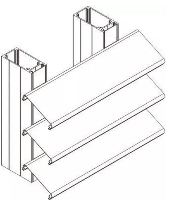 歐式百葉的遮陽體系選用高強(qiáng)度75E、80鋁合金葉片,葉片呈弧形,在0-105度之間可調(diào),是一種在立面或與水平面夾角大于75°傾斜的方向上可完成翻轉(zhuǎn)的建筑外遮陽產(chǎn)品。