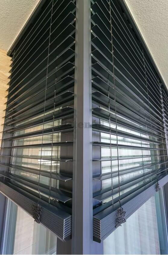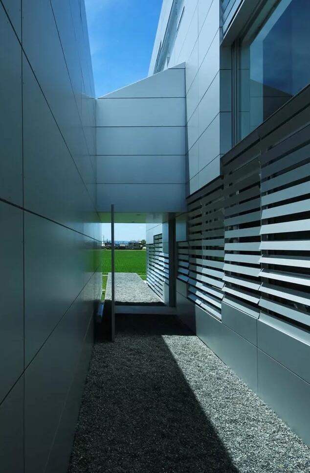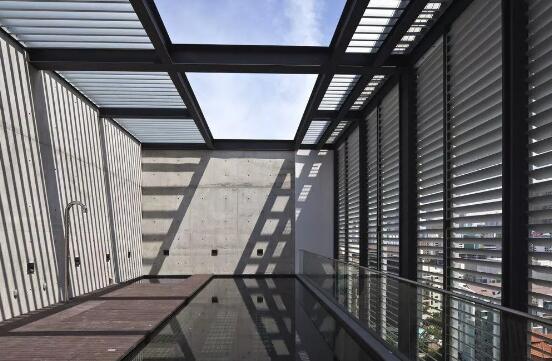但是因為鋁制百葉窗突出的耐候性,因此更適用于室外遮陽。在日本就有一座用鋁板做外遮陽的建筑。為減少夏季輻射熱量,該建筑的兩側(cè)沒有設(shè)計開口。