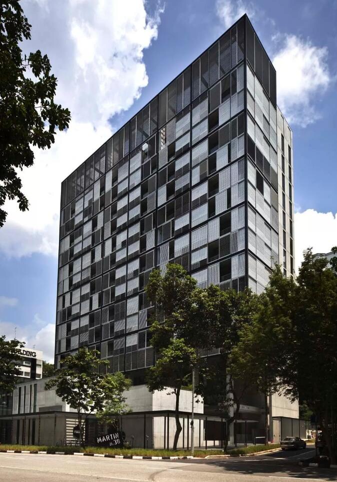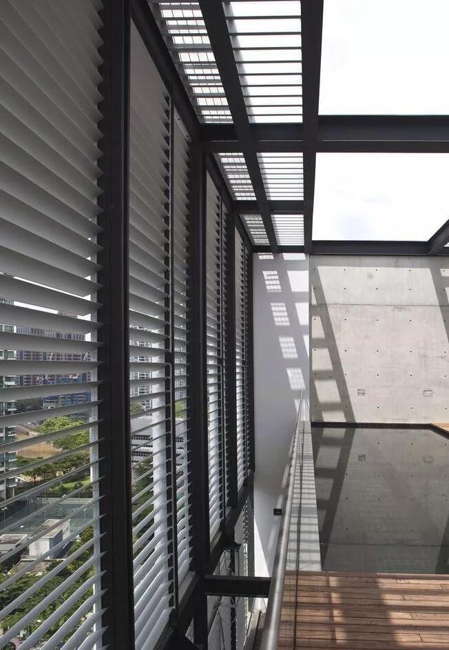 相較于日本這座充滿設(shè)計風格的百葉窗建筑,在新加坡有一座“沒有風格”的公寓樓也同樣是利用鋁百葉窗來遮陽的。